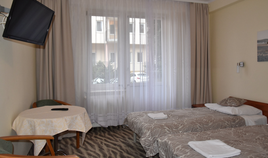 Do dyspozycji Gości oddajemy 82 komfortowe pokoje 2 – osobowe z balkonami. Pokoje na parterze posiadają otwarte tarasy z możliwością wyjścia na zewnątrz. Na wyposażeniu pokoju znajduje się: łazienka, TV, telefon. Ośrodek posiada windę.