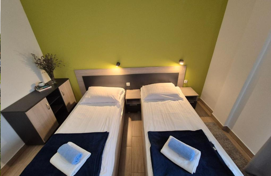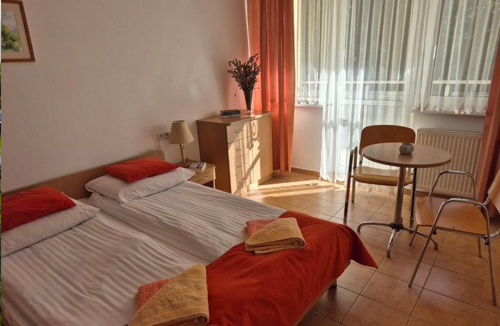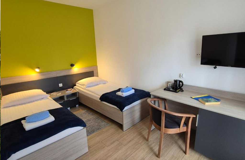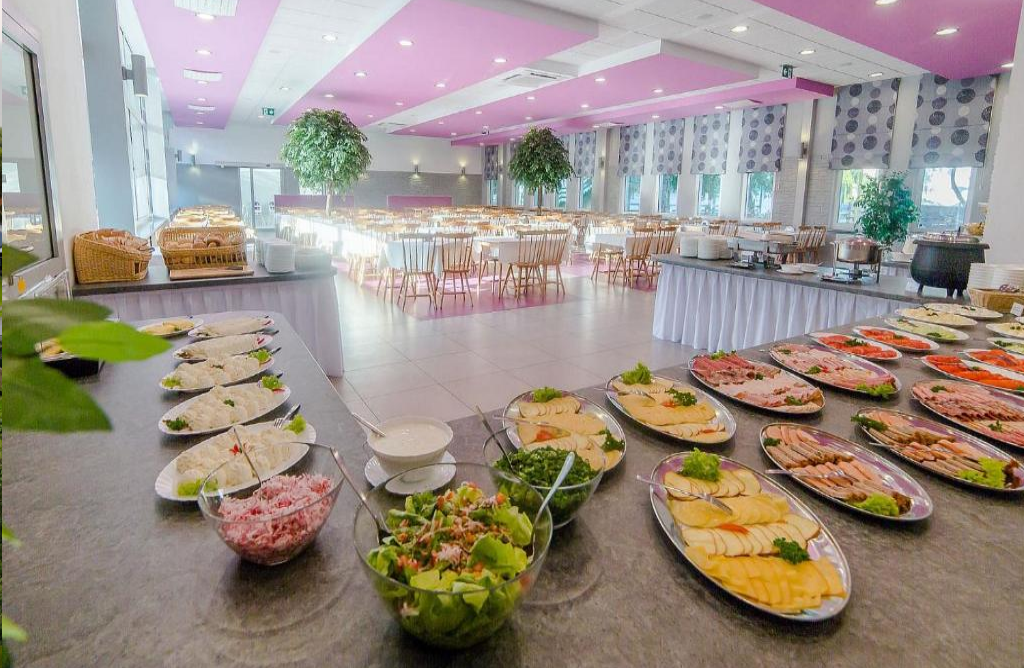 Ośrodek składa się z kilku oddzielnych budynków o różnym standardzie. Pawilon A – pokoje o najniższym standardzie (standard 3), budynek nie posiada windy. Pawilon B – pokoje o najwyższym standardzie (standard 1+), budynek posiada windę. Pawilon C – pokoje o średnim standardzie (standard 2), budynek nie posiada windy. Pawilon D i E – pokoje o średnim standardzie (w większości standard 2, pokoje podwójne o standardzie 1), budynki nie posiadają windy. Pawilon F – pokoje o wyższym standardzie (standard 1), budynek posiada windę. W tym pawilonie znajduje się również baza zabiegowa. Ośrodek przystosowany jest do potrzeb osób poruszających się na wózkach inwalidzkich. Pokoje: 2, 3 os. z łazienkami, balkonami, TV, czajnikiem, lodówką (tylko w pokojach standard 1+), ręcznikami, sprzętem plażowym, Wifi.