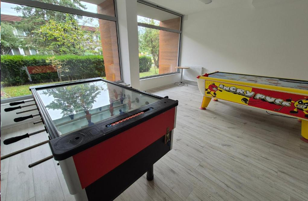Na terenie ośrodka wypożyczalnia rowerów, wypożyczalnia drobnego sprzętu sportowego (badminton, piłki do siatkówki, koszykówki, rakietki do tenisa stołowego), bilard, tenis stołowy, piłkarzyki, cymbergaj, sala gimnastyczna, sala fitness wyposażona w sprzęt sportowy: bieżnia, orbitrek, rowerki pionowe, rowerek poziomy, siłownia zewnętrzna w ogrodzie, plac zabaw dla dzieci, salka zabaw dla dzieci, boiska do gry w siatkówkę, koszykówkę, internet WI-FI, biblioteka